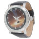 Uhr, Vintage Männeruhr mit schwarzem Lederarmband