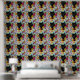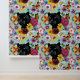 Ein schwarzes Jaguar-Katzenportrait mit bunten mexikanischen Fliesen und Blume.
