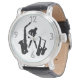 Uhr, Klassische Damenuhr mit schwarzen Lederarmband