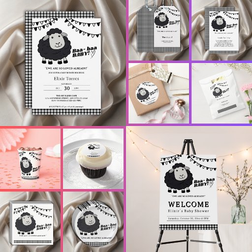 Die Black Kawaii Little Lamb Baby Shower Collection vereint elegante Eleganz mit reizvollem Charme. niedliche Lamm-Designs in einer einfarbigen Palette, die durch kawaii-Stildetails betont wird. Diese Kollektion ist perfekt für ein modernes und stilvolles Fest geeignet und vereint sanfte, spielerische Elemente mit einer kühlen, raffinierten Touch und schafft so ein einzigartiges Erlebnis. Wenn Sie ein anderes passendes Produkt oder eine Anpassung benötigen, wenden Sie sich bitte per E-Mail an Zazzle.