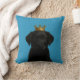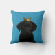 Welpe in Gold Crown Niedliches Kissen aus Ricaso. Ein bezaubernder schwarzer Labrador Welpe auf blauem Hintergrund. Ideal für Hunde- und Tierfreunde.
