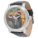 Uhr, Vintage Männeruhr mit schwarzem Lederarmband
