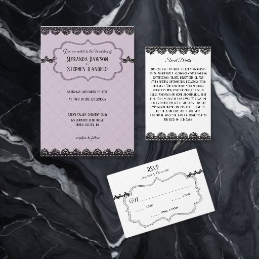 Black Lace on Soft Lavender Custom Wedding Platzkarte