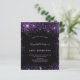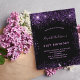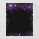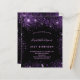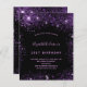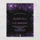 Eine mädchenhafte und weibliche 21. (oder jedes Alter) Geburtstagsfeier Einladung. vorne: Ein schicker schwarzer Hintergrund. Dekoriert mit dunklen lila Imitaten Glitzer Staub. Personalisieren und fügen Sie einen Namen und Party-Details hinzu. Der Name wird mit einem handgeschriebenen Stilskript geschrieben, mit lila, hellen Buchstaben. Zurück: Schwarzer Hintergrund und Imitat Glitzer. 1 Blatt = 1 Einladung mit Druckkante bis Kante.