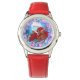 Kinderuhr aus Edelstahl mit rotem Lederarmband