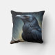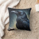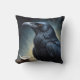 Schwarzes, rotes Kissen. © Dunkles Herz Wünsche. Ein Wurfkissen mit einem schwarzen Raven auf einem Zweig mit etwas Papier, das Nevermore sagt.