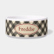 Schwarz-Sahne-Gingham schmückt diese niedliche, rustikale Schüssel mit Haustieren. Passen Sie diese Tierfutter-Schüssel an, indem Sie den Namen ändern, um Ihre Bedürfnisse zu Anzug. Das Design stammt aus der Originalkunst.
