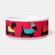 Passen Sie dieses Hundefuttergericht an, um Ihre Liebe von Scottish Terrier Hunden zu zeigen und mit dem Namen Ihres Hundes in der Mitte auf einem roten Hintergrund zu personalisieren. Das farbenfrohe Design besteht aus 6 schwarzen schottischen Hunden in einer farbenfrohen Auswahl an Hundekleidung und auf einem roten Hintergrund. Diese niedlichen und bezaubernden Scotties tragen verschiedene farbenfrohe Hundeschwitzmäntel oder T-Shirts und einer hat einen Schlittenhut. Die Farbtöne sind rot, lavender, lila, gelb, türkisblau, aquamarin blau, lila grün und orange mit Pfotendrucken, Sternen, Streifen, Karos und Schneeflocken. Diese skurrilen und trendigen Hunde sind originelle Kunst von Phyllis Dobbs und werden das Herz eines Hundeliebhabers schmelzen. Diese Haustiere sind sowohl einzeln als auch auf farbenfrohen Blöcken mit Grenzen zur Produktkoordination. Alle sind vollständig anpassbar, um es zu Ihrem eigenen zu machen!