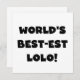 Die weltweit besten Lolo T Shirts, Tasse, Karten, Aufkleber, Taschen, Magnete, Schlüsselanhänger und andere Lolo Bekleidung und Geschenke mit schwarzem Text-Design.