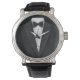 Uhr, Vintage Männeruhr mit schwarzem Lederarmband