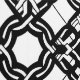 Black and white Deco interlaced pattern with bold geometric structure. This modern design blends symmetry and contrast, creating a sophisticated accent ideal for contemporary or minimalist interiors seeking a refined Deco touch.