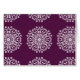 Dieses weiße Mandala liegt auf einem dunklen, lila Hintergrund. Die Farbe ist tief und raffiniert. Teil der Sammlung Mola Mandala.