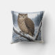 This decorative cushion cover features a Blakiston’s Fish Owl quietly perched above a flowing winter river, surrounded by snow-covered trees in the forests of Japan.
