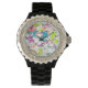 Schwarze Damen Email Strassuhr