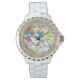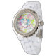 Eine wunderbare Damenuhr mit weißem Armband und grün-weiß-kariertem Ziffernblatt. Trägt sich ganz fabelhaft. Exzellenter Druck, sehr klare Farben. Schönes Design.