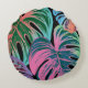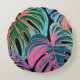Das Hotel verfügt über ein gewagtes, modernes, gemaltes Palmenblatt in tropischen Farben wie Korallen, Türkis, Gelb und Rosa. Set auf schwarzem Hintergrund.