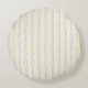Dekoratives rundes Kissen mit gelben und grauen Mustern.
