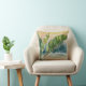 Eine andere Aquarellszene auf jeder Seite des Kissens - ein paar Palmen verwoben entlang eines schönen Strandstrandes mit einem großen Himmel dahinter. Auf der anderen Seite des Strandes stehen große tropische Blätter mit einem schönen orangefarbenen Sonnenuntergang. Wasserfarbe ist in letzter Zeit riesig im Design und ein wenig tropisch in Ihre Dekoration ist immer lustig.