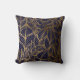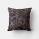 Blattmuster der goldenen Linie auf blauem Kissen