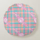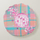 Blau, Rosa und Pfirsichmuster mit Glitzer & Herz | Rundes Kissen