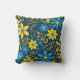 Blauer und gelber Blütenwirbel Kissen.