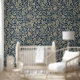 Blau und Gold Vintages Blumenmuster Tapete