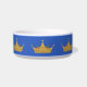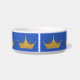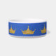 Hübscher Nahrung- für Haustiere/Wasserteller getan in der weißen Keramik, mit einem blauen Band, um die Schüssel und die Grafiken der goldtone königlichen Kronen. Ein dekoratives Gold und weißer ein PlakettenTextbereich, auf der Front hat den blauen Text, der bereit ist, für Ihren kleinen Prinzen im Wohnsitz zu personifizieren.