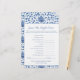 Baby Shower Spiel "Raten Sie den richtigen Preis?" in einem eleganten Aquarellblau-Weiß-Muster, inspiriert von dem Typ, den Sie auf Vintagen Ingwergläsern sehen können. Der gesamte Text ist vollständig an Ihre Bedürfnisse angepasst.