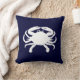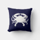 Weiße Krabbenform gegen ein dunkelblaues. Die Art ist eine blaue Krabbe. Sie können immer eine personalisierte Textnachricht hinzufügen, z. B. einen Familiennamen. Oder löschen Sie die Krabbe auf der Rückseite und fügen Sie Ihre Familiendaten und/oder Foto dort zurück. Erstellen Sie Ihr eigenes Strandhaus Kissen.