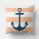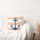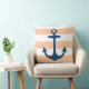 Stilvoll und schicke Kissen mit quadratischem Akzent zeichnen sich durch ein weißes und pfirsichfarbenes Cabana-gestreiftes Muster mit marineblau blauem Anker aus. Die pastellfarbene pfirsichfarbene Hintergrundfarbe kann angepasst werden.