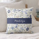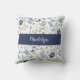 Blaue Aquarell-Wildblumen-Monogramm-Name Kissen