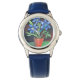 Kinderuhr aus Edelstahl mit blauem Lederarmband