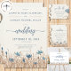 Blaue Blumen & Weizenfeld Moderne Hochzeit Einladung