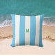 Das perfekte personalisierte Kissen für Ihren Outdoorraum in diesem Sommer.. Himmelblau Cabana Streifen mit grüner Monogramm. Personalisieren Sie mit Ihrem eigenen Initial. Matching Zubehör in unserer Minimal Monogram Cabana Stripe Kollektion erhältlich.