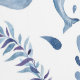 Ein elegantes maritimes Muster mit blauen Delphinen und Meereswellen. Dazwischen gibt es individuelle goldene Tropfen. Bringt den Ozean in dein Leben.