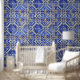 Mediterran, blaue Fliesen, Portugiesisch, Azulejo-Muster, Tapeten.