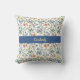 Blaue Gelbe Aquarell-Wildblumen-Monogramm-Name Kissen