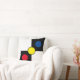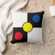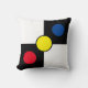 Blaue, gelbe Kreise auf dem Schwarz-weißen Kissen.