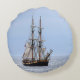 Blaue Himmel auf dem Wasserboot Rundes Kissen