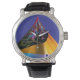 Uhr, Vintage Männeruhr mit schwarzem Lederarmband