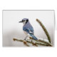 Eine blaue Jay in einem Kiefernbaum im Winter