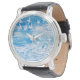 Blaue Küste Vögel Moderne Wasserfarben Kunst Armbanduhr