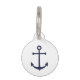 Moderne nautische Begleiterin-Tag mit marineblau Anker auf weißem Hintergrund.