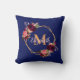 Blaue Navy Florals, goldene geometrische Monogramm Kissen