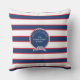 Blaue Navy White Nautical Monogram Strip Kissen