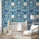 Dieses luxuriöse Tapete zeichnet sich durch ein Muster aus, das auf osmanischen Fliesen mit Blume-Motiven und blauer Farbpalette basiert.