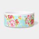 Rosen-Blumenmuster des romantischen 80ers des Chic Vintagen schäbiges Blumenauf einer schönen Aquababyblauhintergrundhunde- oder -katzenhaustierschüssel.