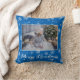 Blaue Schneeflocken Frohe Weihnachten 2 Foto Kissen. Personalisieren Sie dieses Weihnachtskissen mit einem Foto auf der Vorderseite und einem auf der Rückseite. Das Design hat weiße Schneeflocken in verschiedenen Formen und Größen auf blauem Hintergrund. Dieses Kissen ist ein personalisiertes Weihnachtsgeschenk für Ihre Familie oder Freunde.