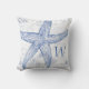 Blaue Starfish-Küstenkarten-mit Monogramm Initiale Kissen