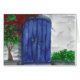 Ein Druck von einem ursprünglichen Watercolorkunstbild einer blauen Tür in einem griechischen Dorf-Zuhause, gemalt durch Georgia Pistolis.